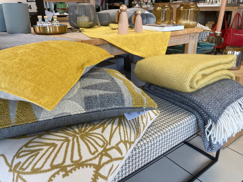 Kissen und Tischwäsche in verschiedensten Mustern, Farben, Größen