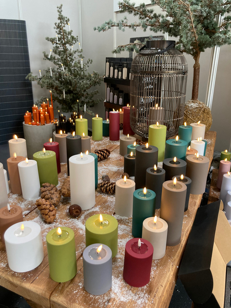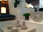 Die "shining collection", weiße Kunsstoffleuchten, die im Garten oder im Haus strahlen. Weihnachtsstern, Blumentopf, Shining eye usw. Auffallend schön und Made in Germany.